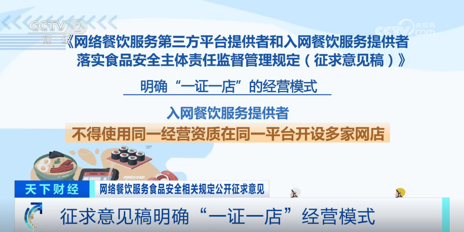 收罗看法稿明白“一证一店”的运营模式。平台供给者对入网餐饮办事供给者利用统一运营天分反复申请入网的行为该当予以。