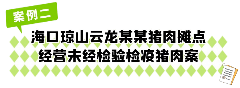 该摊点运营未经查验检疫猪肉的行为,违反了《中华人平易近国食物平安法》第三十四条第(八)项。鉴于该摊点涉案货值金额小且未形成严沉社会风险后果,根据《中华人平易近国食物平安法》第一百二十第一款第(四)项,海口市市场监视办理局琼山对该摊点做出行政惩罚:1。未经检疫查验的猪肉17。51公斤;2。违法所得949。8元;3。罚款15000元。