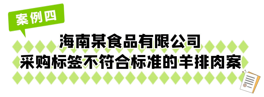 该公司采购标签不合规羊排肉及出产标签不及格食物的行为,违反了《中华人平易近国食物平安法》第六十七条第一款。根据《中华人平易近国食物平安法》第一百二十五条第一款第二项,海口市市场监视办理局龙华对该公司做出行政惩罚:1。标签不合适尺度的食物海鲜系列11包、鲜切羊排肉13包;2。罚款5000元。标签合规是保障消费者知情权、逃溯产物来历的环节。标签不合规可能导致原料来历不明、产质量量无法逃溯等风险。肉成品运营企业需严酷落实进货检验权利,切勿采购标签不合规产物。